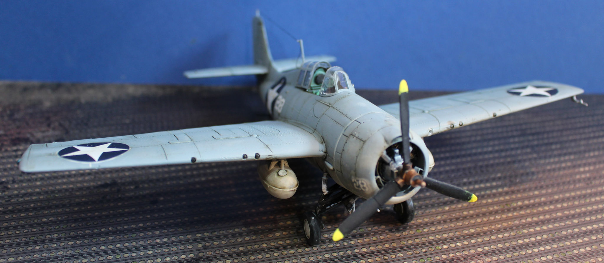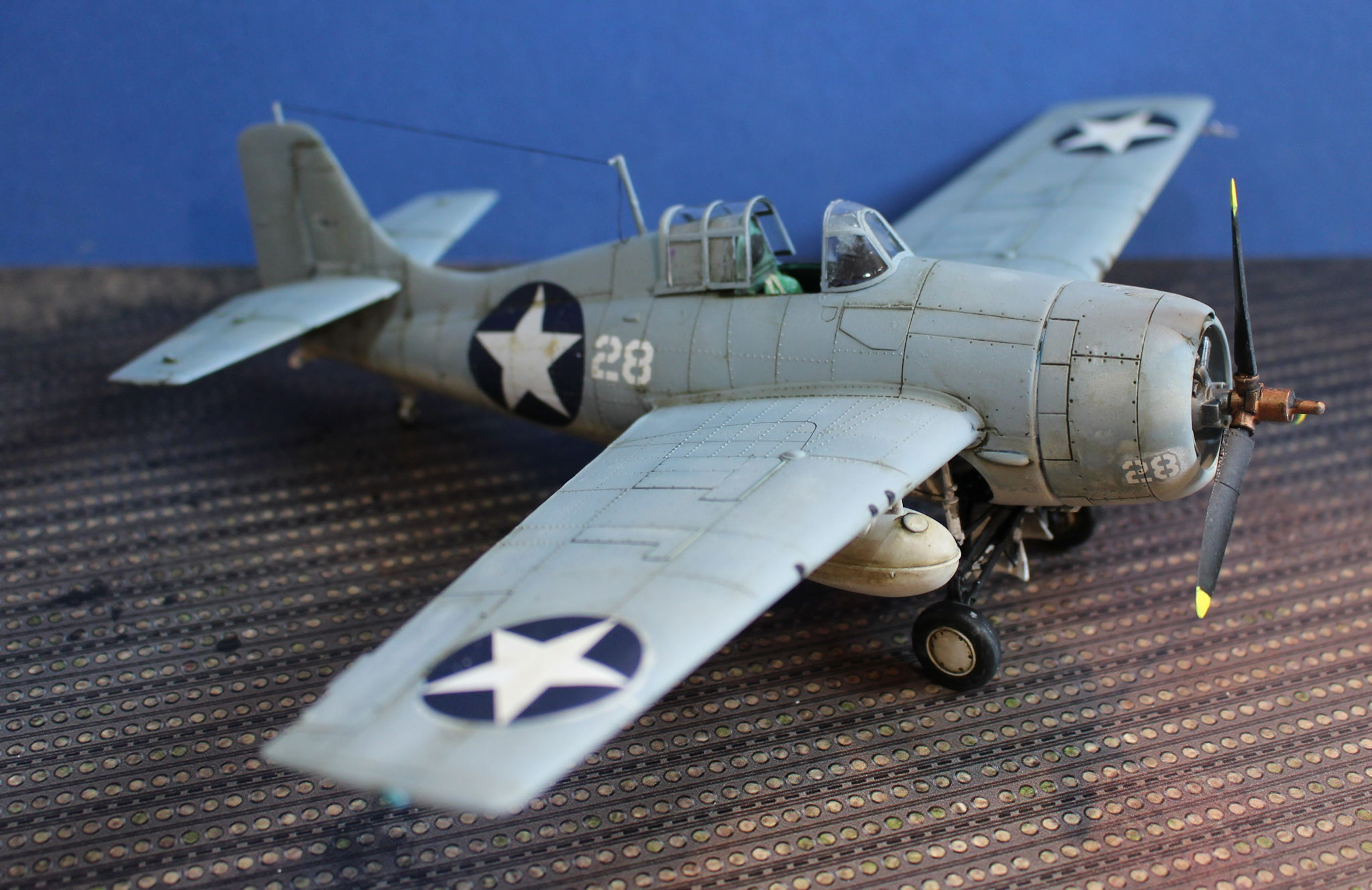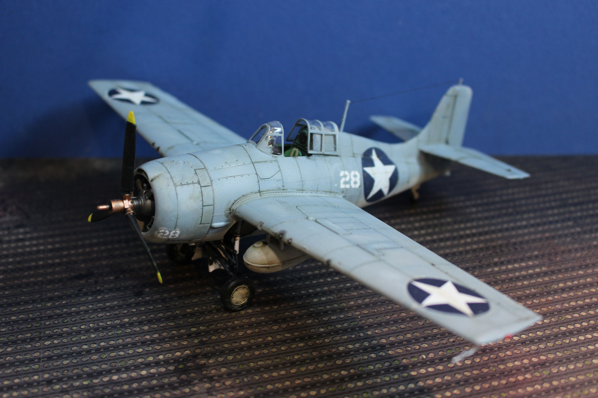 Along with the US forces the Wildcat was also used by other allies, including the Royal Navy where it was known as the Martlet. The prototype first flew in 1937 with a follow on aircraft, with problems fixed flying in Februarty 1939. Early air raft had fixed wings with a folding mechanism added in the F4F-4 version, This folded the wing alongside the fuselage.