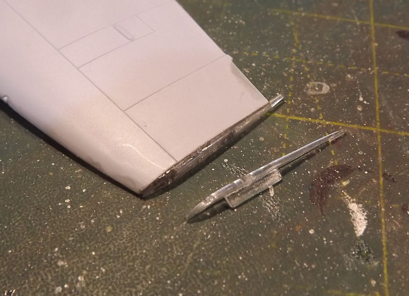 With everything sanded, the slipped wing tip can be fitted. These are clear parts and slide into plae.