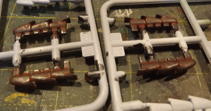 [CaptionThere are two options for exhaust stacks. These were painted metallic black and given a rust wash.