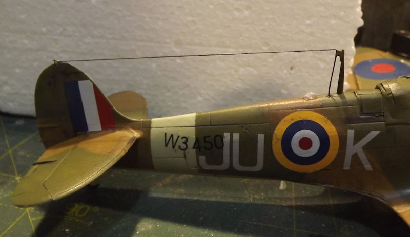 After a coat of VMS matt varnish the borsal navigation light was attached. Then some EZ line was glued into place with superglue to represent the aerial.