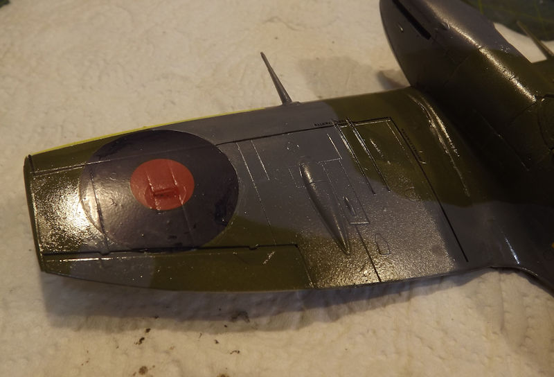 I used the kit decals for the clipped wing aircraft. The decsls are terrible and didn't want to come off the backing paper without soaking in hot water. The under wings get a roundel, some support points and some electronics warnings.