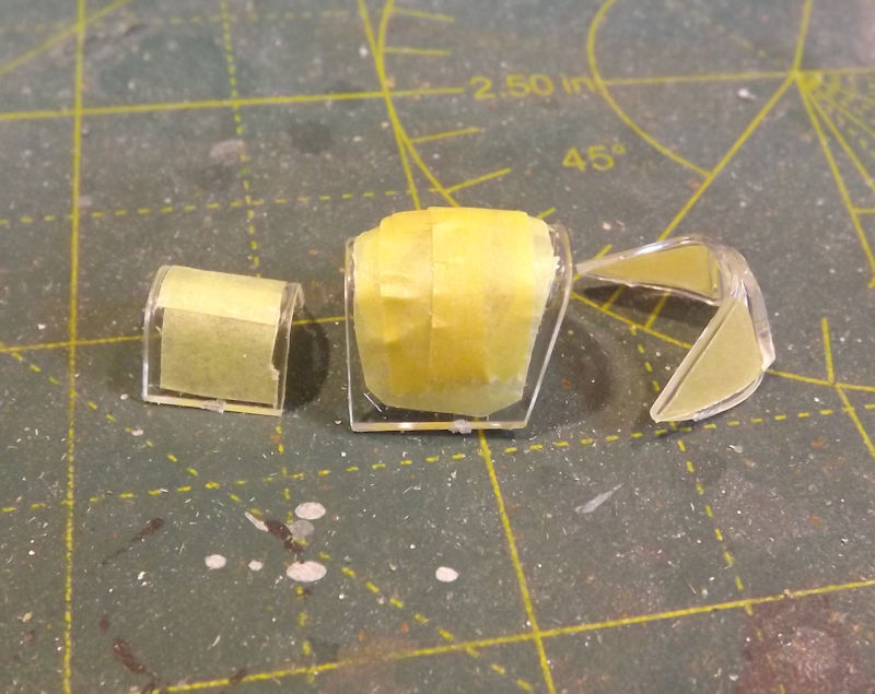 When the PVA had dried I attached the sliding section using some Vallejo masking fliud. When the painting is done, there will need to be some touch up as there is some overlap.