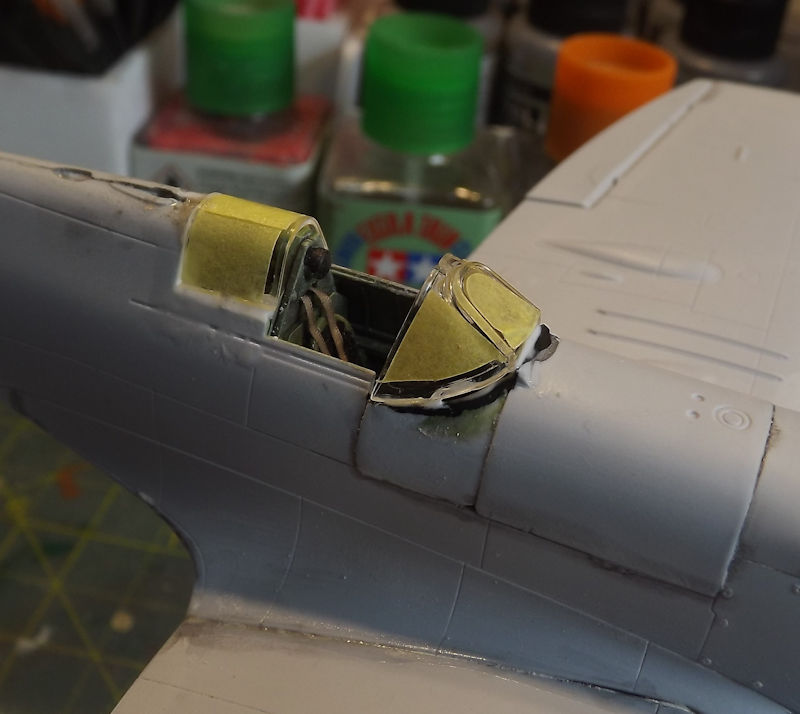 I used an Eduard mask set and some Tamiya masking tape. The set is for a Hasegawa kit so the fit isn't great and the windscreen side panels needed replacing completely.