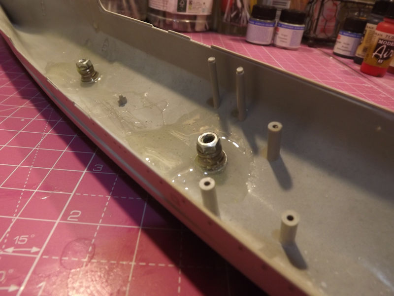 To enable usage of the tripods after the desks are together, I secured some nuts to the inside of the hull.