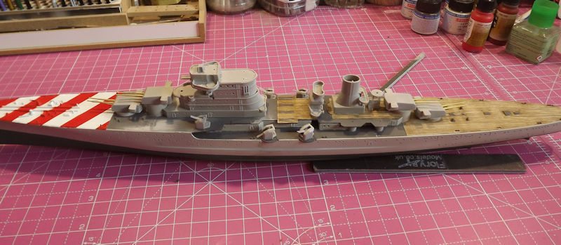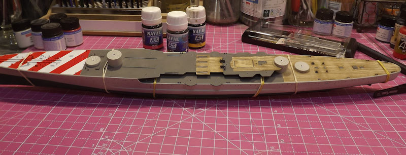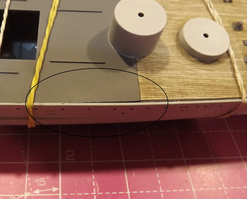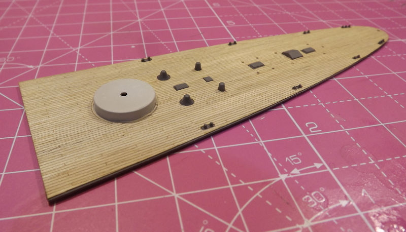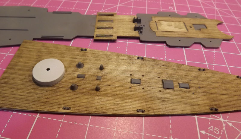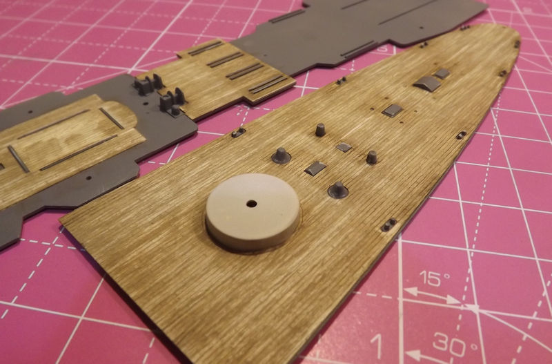 The rear deck is next. This is the most careful one. It was pressed down over the barbette and then lined up carefully.