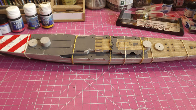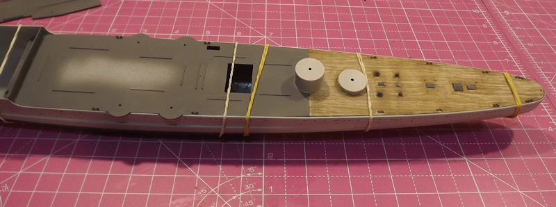 I fitted the main decks and held them in place with elastic band.