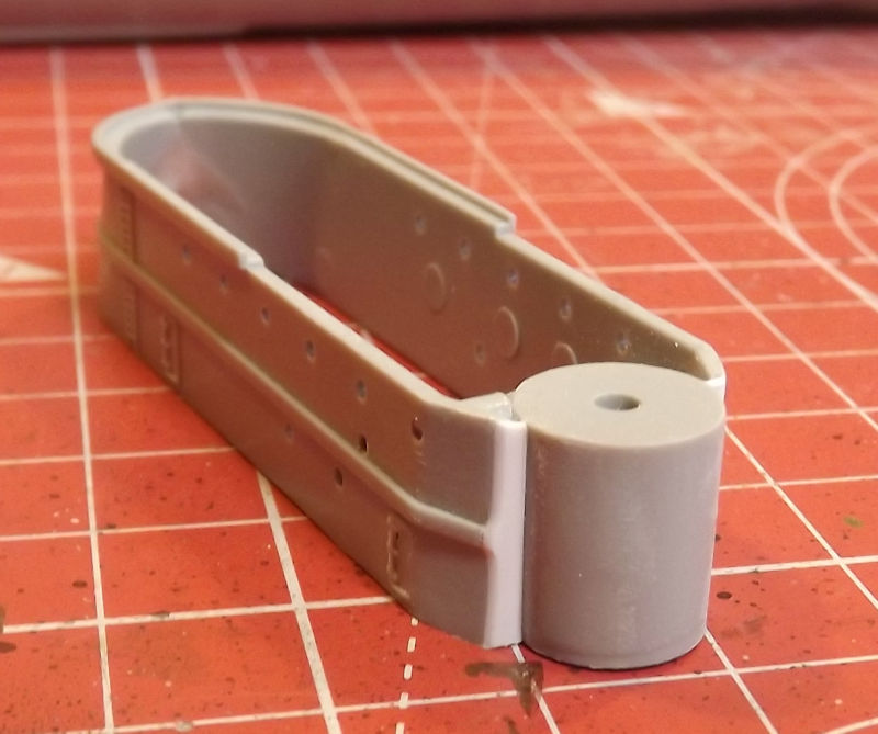 To add strength to the joint, some styrene tube was glued into place. The joint at the rear of this section needed a little filling, with styrene filler, and gentle sanding.