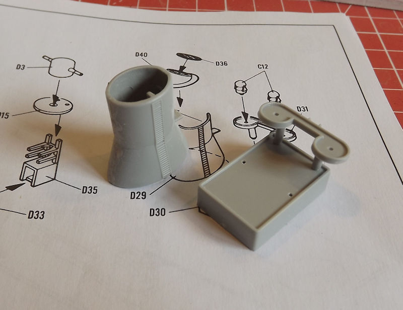 The director platform glues in alright, but the funnel needs some filling and sanding. Some styrene filler has been run up the join, and when set, it will be sanding back.