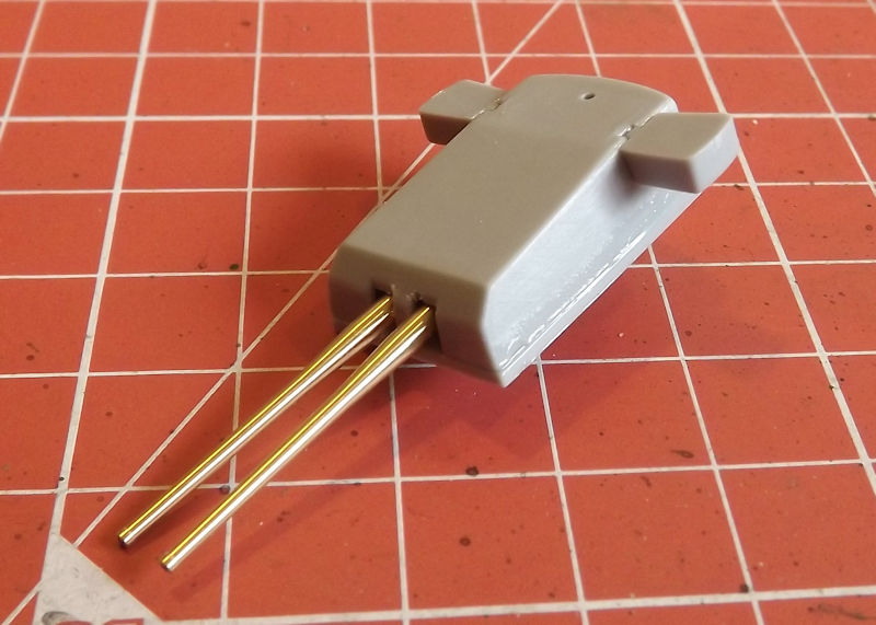 The plastic barrels are cut off the mounts and 1mm holes drills. I drilled the holes to 1.1mm to allow a little wiggle room if needed. A little superglue holds the barrels in place.