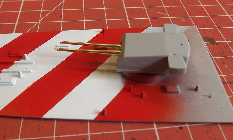 The base of the metal barrels are slightly thicker than the plastic ones, so a little trimming of the turret front is required.  When together, there is a seam round the base of the turret and for the wing pieces which need filling. The undersides of the wings are also hollow, which I don't think should be, so these will be filled too.