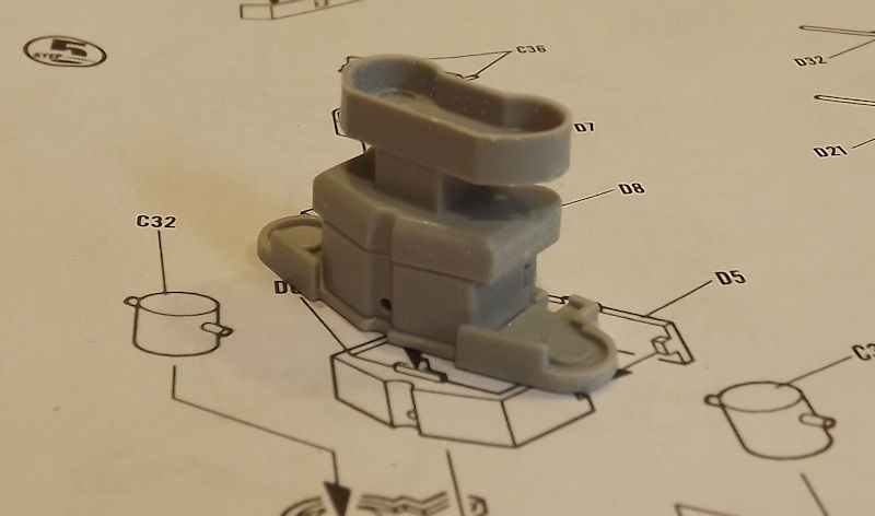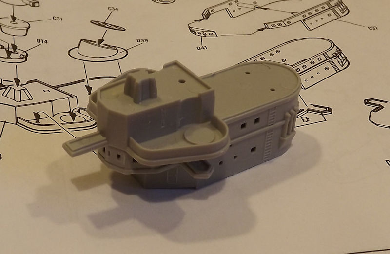 They glue together alright. The part on the left is the base of the top superstructure. This gets some directors and the front funnel top. This will be fitted out later.