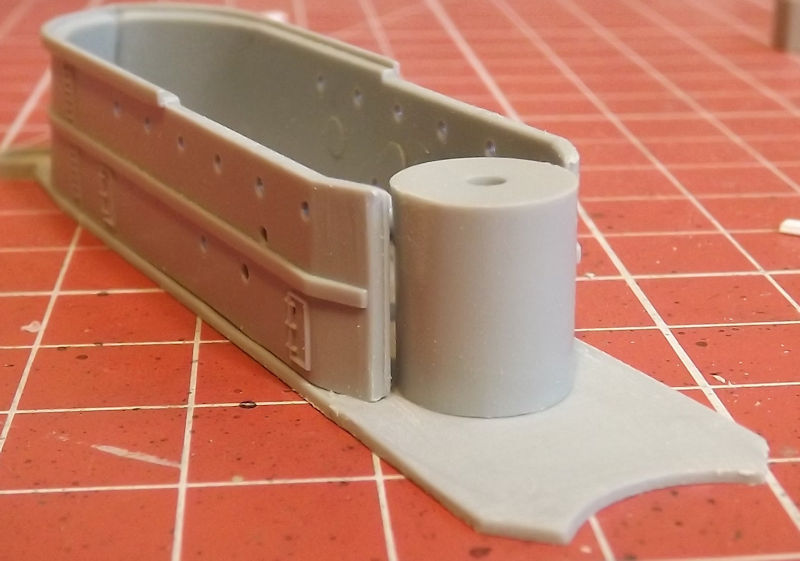 Now back to the upper superstructure. The sides and cylindrical section have massive gaps. The sides are correct, as they meet at positioning guides on the flat section. I closed the gaps with some styrene strip, strengthened with some plastic rod on the inside. I forgot to take a photo for this update, but I'll try to remember for the next.