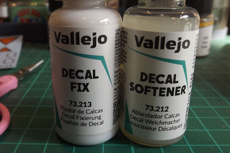 I recently discovered that Vallejo have produced some decal solutions. They've been around for a while bujt I've only just discovered them. The area which gets the decal is coated with the Decal Fix and is left to dry. Then the decal is applied and when dry, the Softener is brushed over the top and left to dry for a couple of hours.